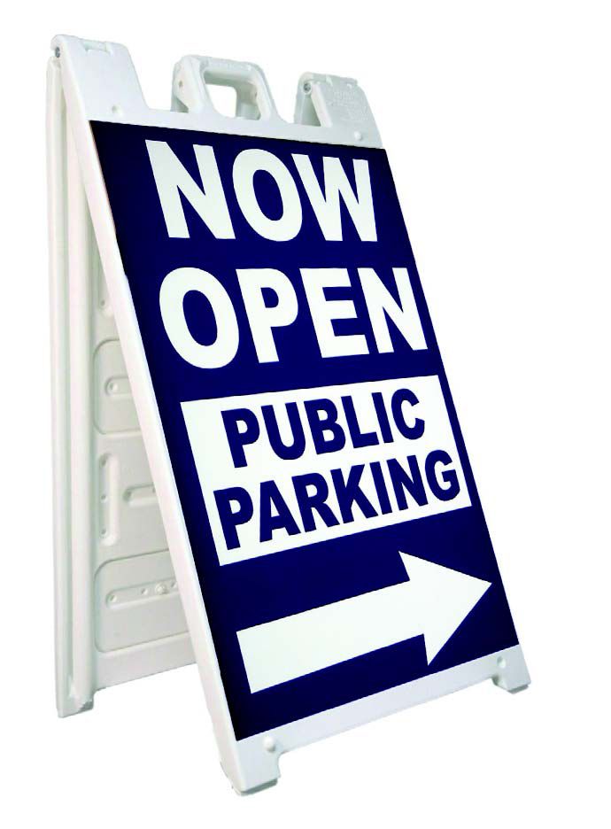 Do you know what your business needs? A bold collapsible sign that can easily be moved around. Not only will this sign get your message across, loud and clear, but you can also easily fold it and transport it to another area for increased visibility. Durable and sturdy, this sign will act as a stable reminder to guests that your business is open.